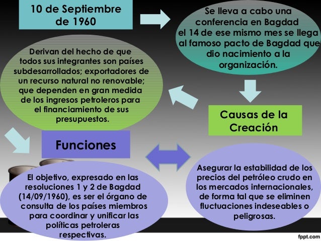El país es actualmente. El 10 de septiembre de 1960 marca la fecha de lo que se conoce como Conferencia de Bagdad a la que asisten Venezuela Irak Irán Arabia Saudita y Kuwait para cuatro días después el 14.