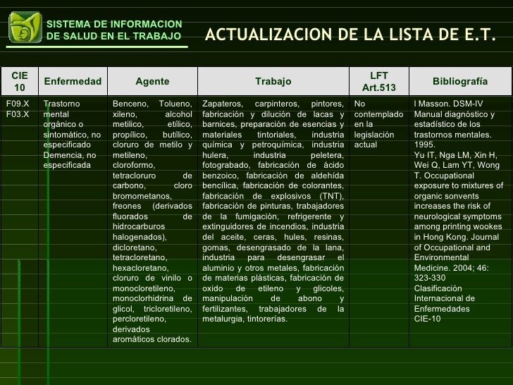 Tabla De Enfermedades De Trabajo 2018 Mexico