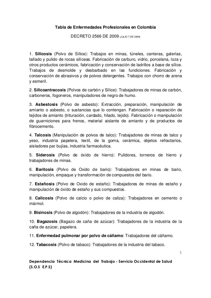 Articulo 201 Tabla De Enfermedades Profesionales Articulo Modificado Por El Articulo 1 Del Decreto 2566 De 2009 Enfermedad Enfermedades Profesional