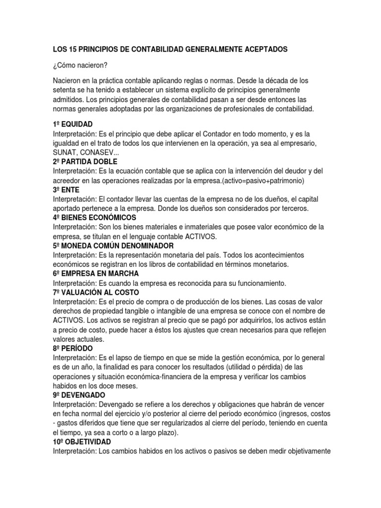 Los 15 Principios De Contabilidad Generalmente Aceptados Pdf