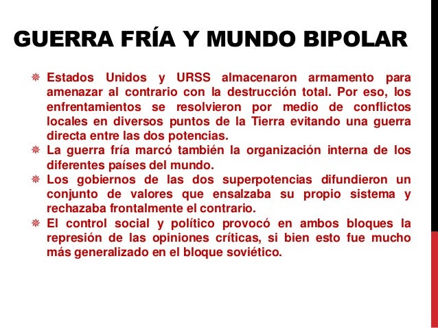 Ambos buscaban el dominio mundial pero el. El fin de la bipolaridad. Dado a la raíz de la caída del muro de Berlín y la disolución de la Unión Soviética se llegaría el fin del sistema bipolar.