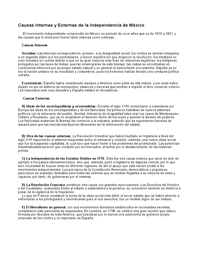 Causas Internas Y Externas De La Independencia De Mexico By Sebastian Antonino Almanza