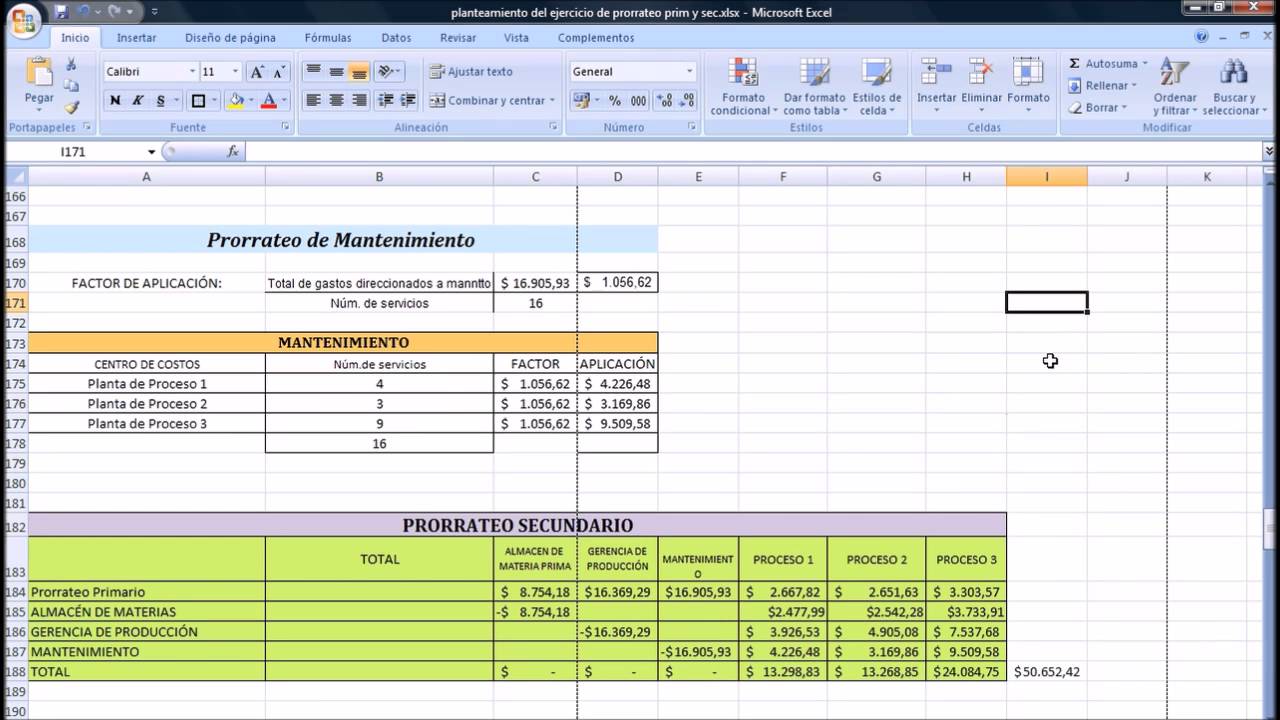 Prorrateo Secundario Contabilidad Y Finanzas Para Ingenieria