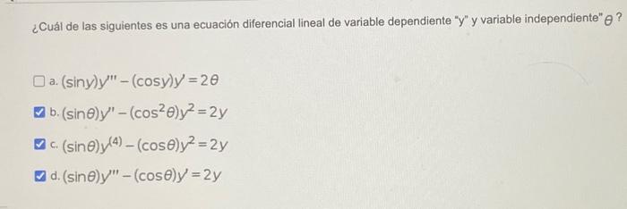 Cual De Las Siguientes Es Una Ecuacion Diferencial Chegg Com