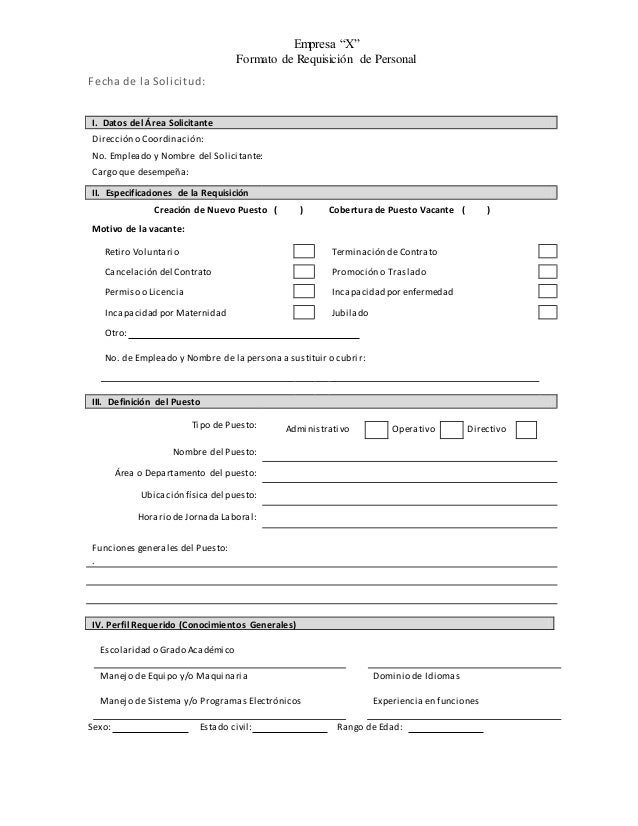 Formulario Requisicion De Personal Pdf Gestion De Recursos Humanos Business