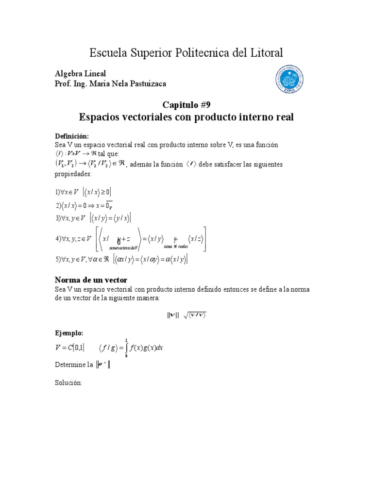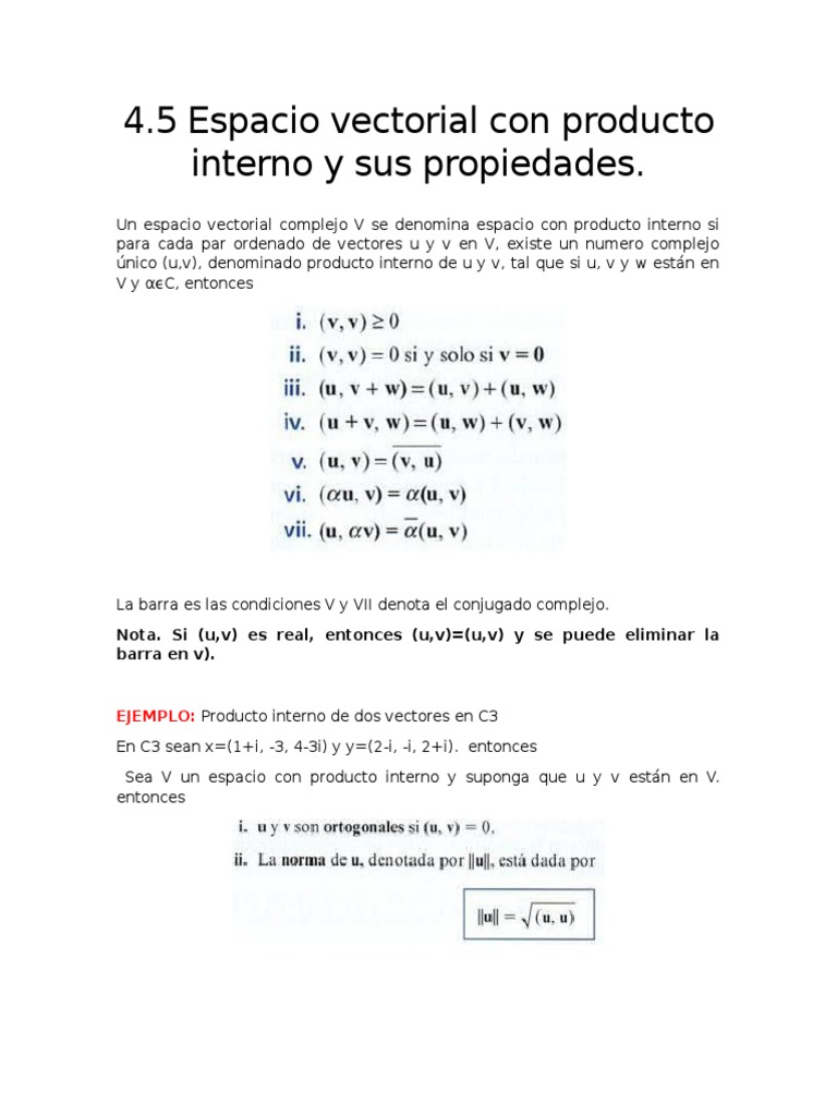 1 Espacio Vectorial Con Producto Interno Y Sus Propiedades Docx Document