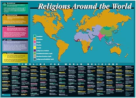 Amazon Com Religiones Del Mundo Mapa Y Timeline Aula Poster Hogar Y Cocina
