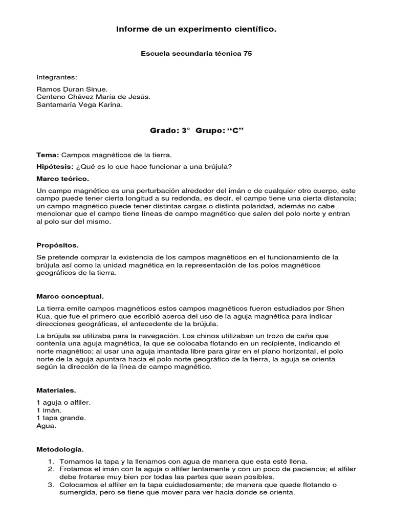 Informe De Un Experimento Cientifico Pdf Magnetismo Iman