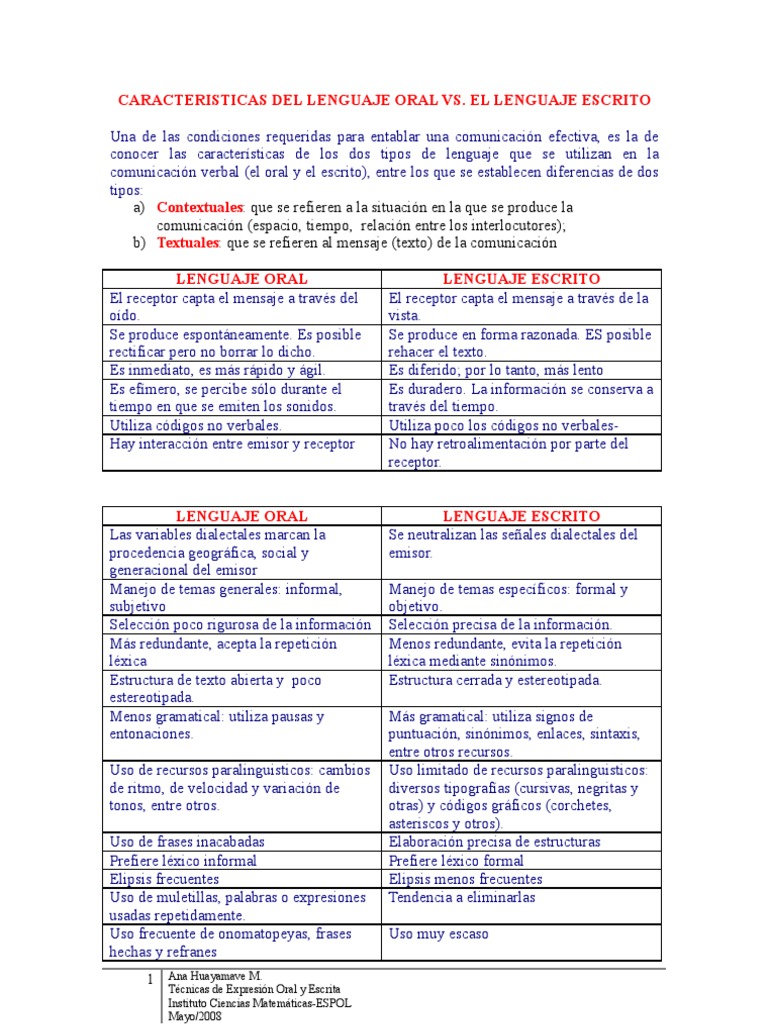 Lenguaje Oral Vs Escrito Pdf Habla Comunicacion No Verbal