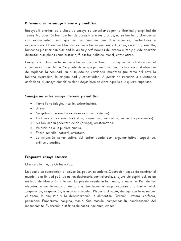 Diferencia el ensayo literario del científico. Diferencia entre ensayo literario y científico Ensayos literarios.