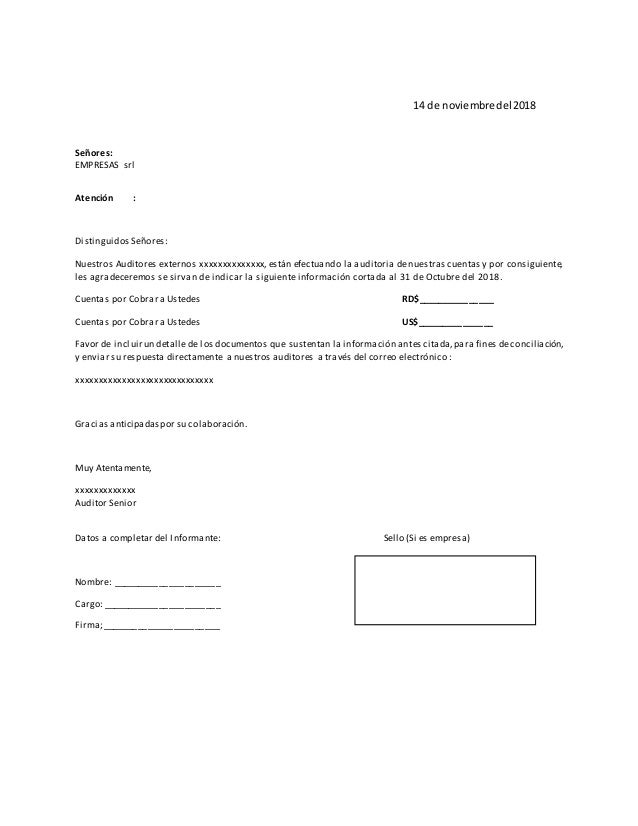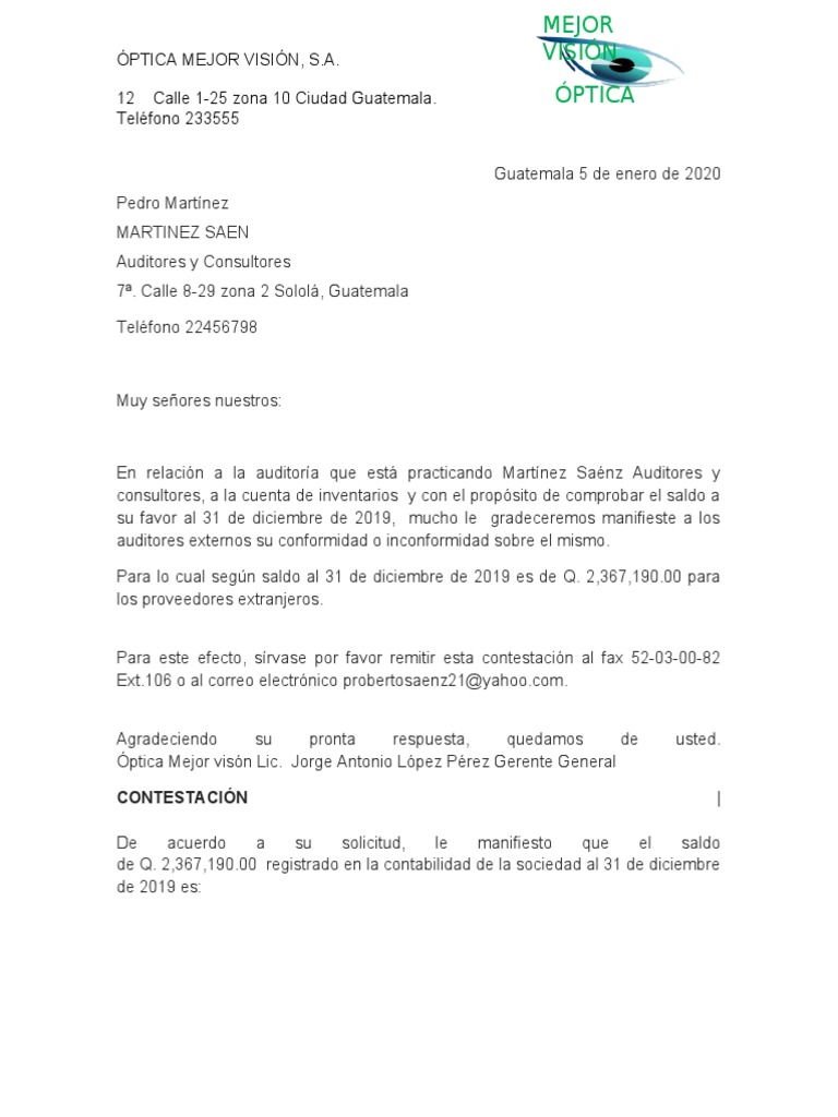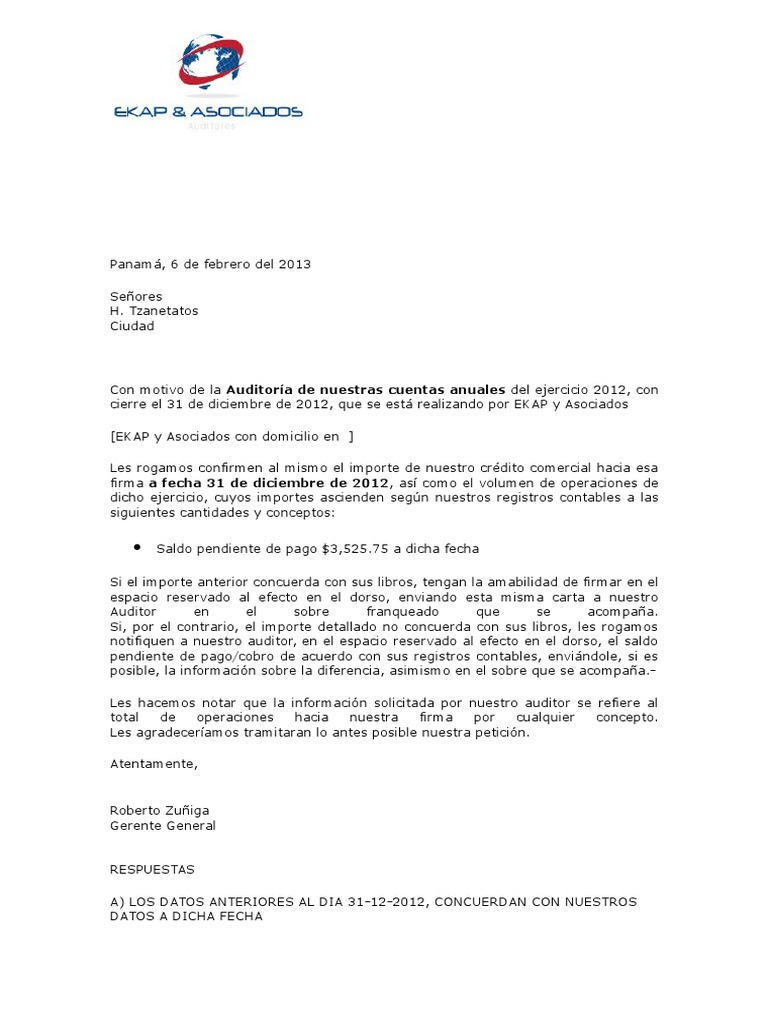 Carta De Confirmacion De Auditoria De Saldos Y Respuestas Apuntes Mario Campos