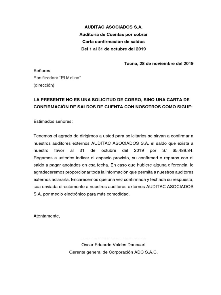 Doc Modelo De Carta De Confirmacion De Cuentas Por Cobrar Erinson Rivera Academia Edu