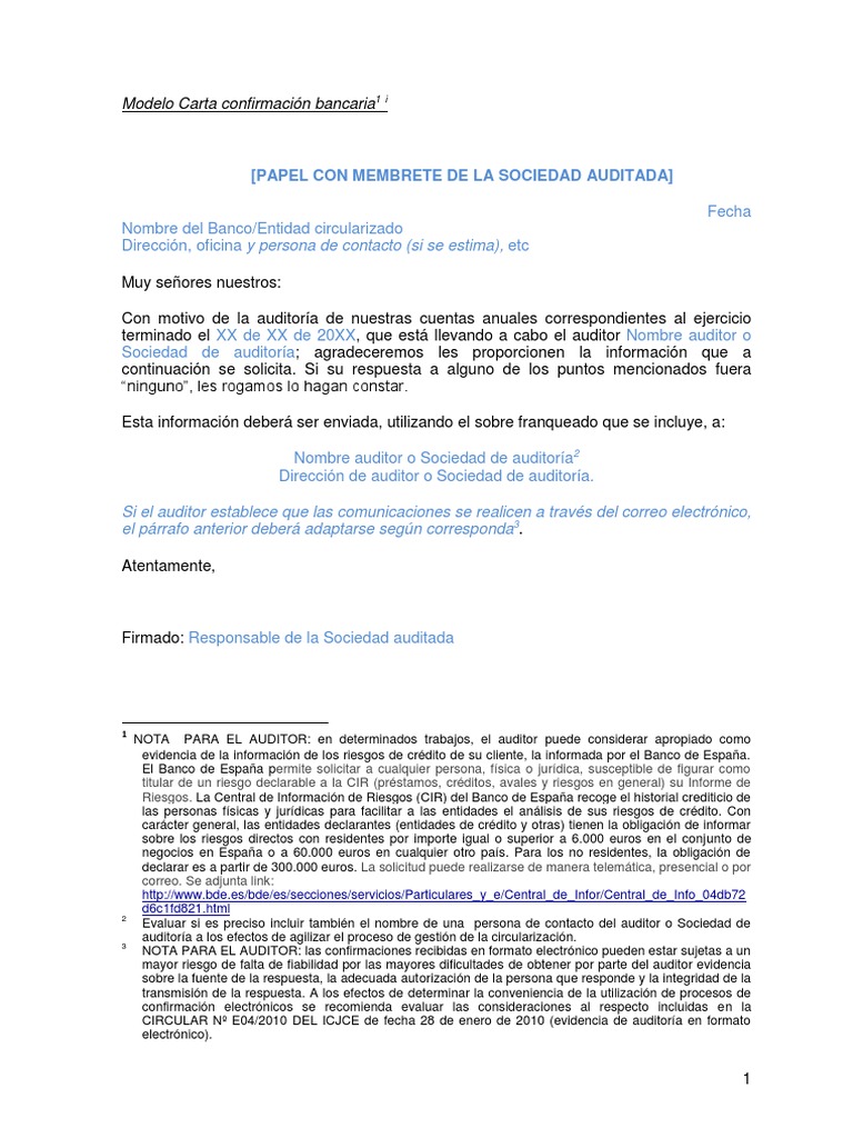 Carta De Confirmacion Bancaria Pdf Bancos Contralor
