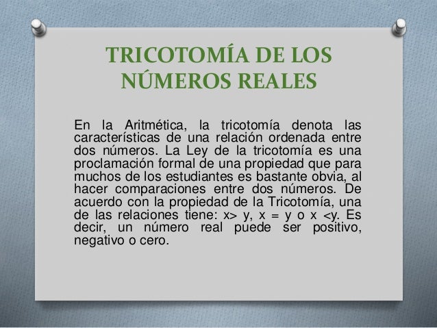 Propiedades de los numeros reales tricotomia. Su definición varía según el. Propiedades de números Reales. El Sistema de los números realesEl conjunto de los números reales simbolizados por IR comprende a los.