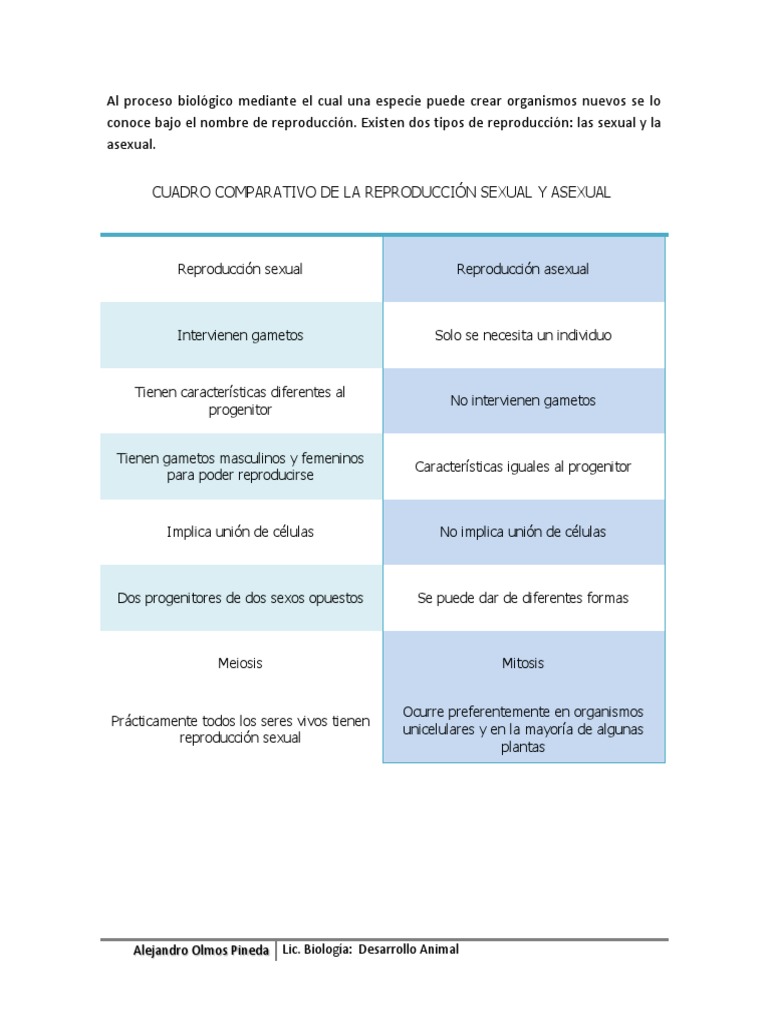 Cuadro Comparativo De La Reproduccion Sexual Y Asexual By Nestor Ochoa