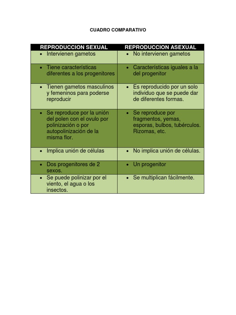Cuadros Comparativos Sobre Reproduccion Sexual Y Asexual Cuadros Comparativos