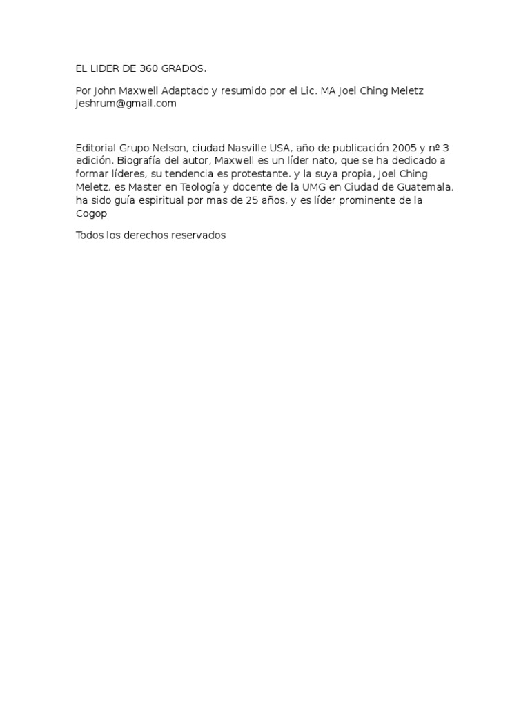 LÃder de 360 grados pdf descargar. Con la esperanza de contribuir en algo les dejo para que se deleiten con los principios de liderazgo de Maxwell. El líder de 360 grados PDF Por John C. Lider De 360 Gradospdf.