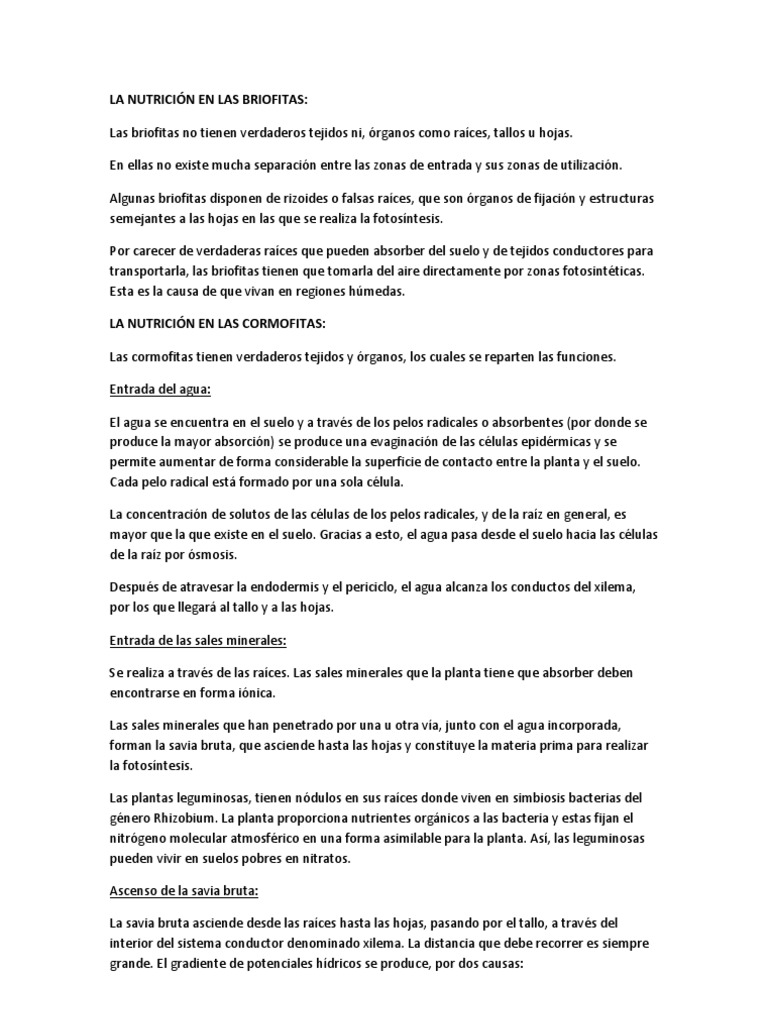La Nutricion En Las Briofitas Pdf Raiz Fotosintesis