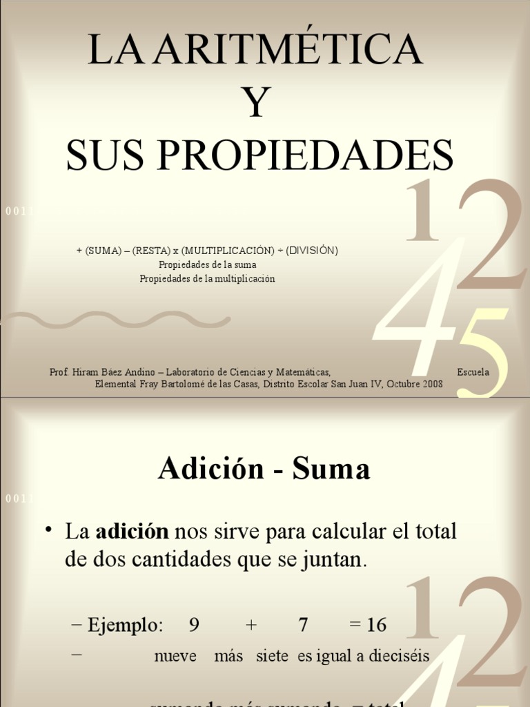 Propiedades de la aritmetica. Esta lección nos ayudará a profundizar en la aritmética. Exploraremos varias formas de representar los números naturales así como el valor posicional el orden de las operaciones el redondeo y otras propiedades de la aritmética. Escuche estas ponencias para recordar las matemáticas olvidadas.