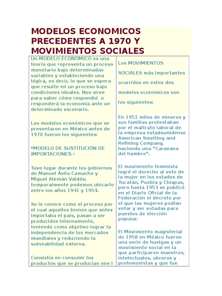 Modelos Economicos Precedentes A 1970 Y Movimientos Sociales Pdf Ciencias Economicas Economias