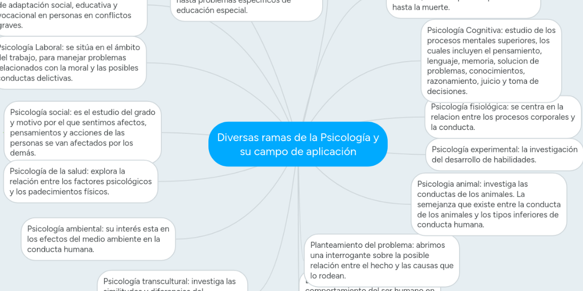Diversas Ramas De La Psicologia Y Su Campo De Apl Mindmeister Mapa Mental