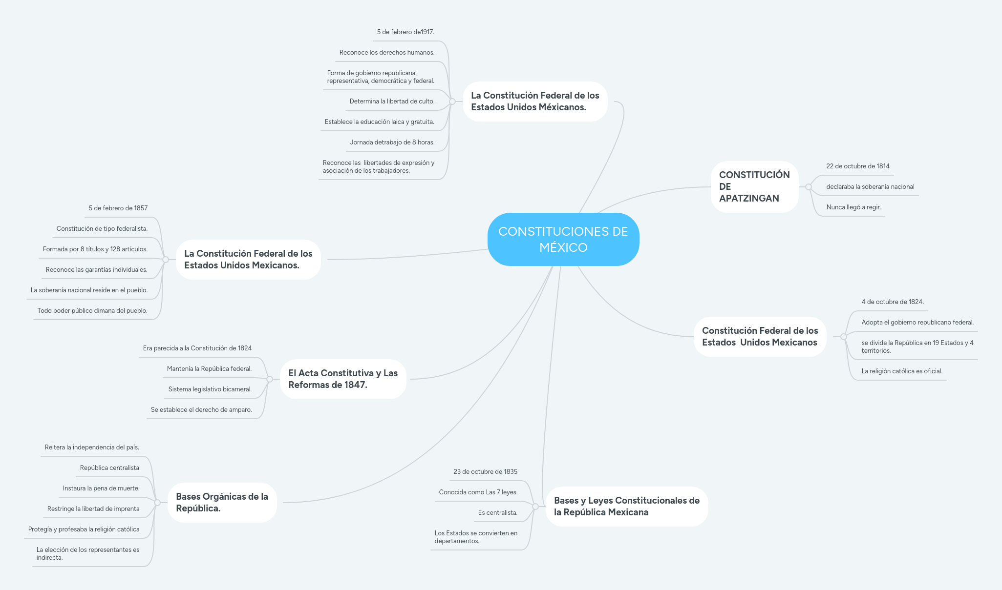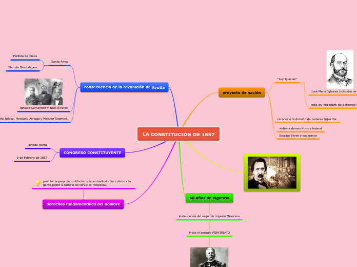 Mapa Mental de La Constitución de 1857 image - Coggle Diagram. De acuerdo a lo establecido en el Plan de Ayutla convocó al Congreso Constituyente el 16 de.