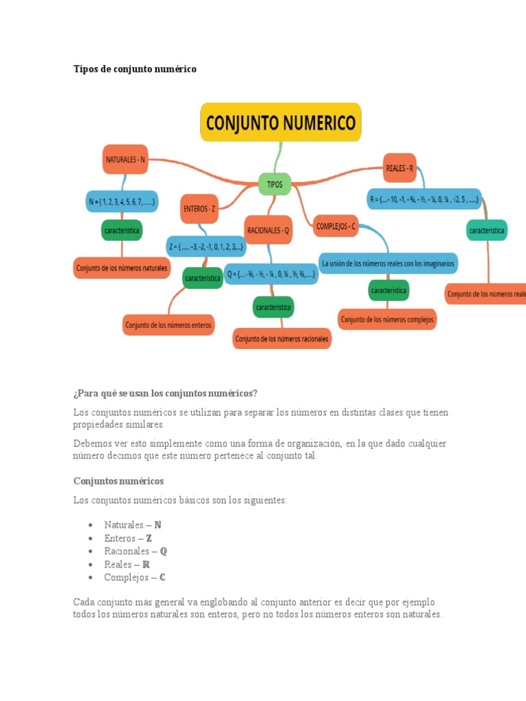 Esquema Matematico Identificar Los Tipos De Conjuntos Numericos Identificar Las Caracteristicas De Brainly Lat