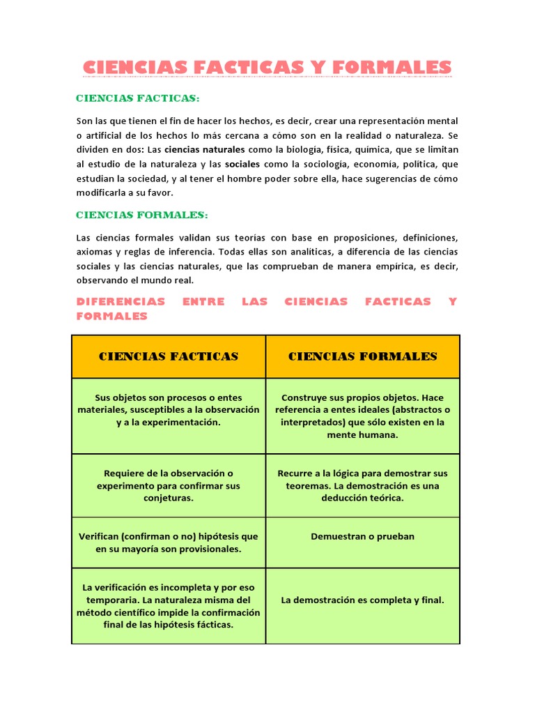 Diferencia Entre Ciencias Facticas Y Ciencias Formales Diferenciando