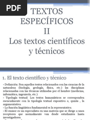 En otras palabras el significado del texto científico es básicamente el de una producción textual que circula en los círculos científicos. Un texto científico es una producción escrita que aborda teorías conceptos o cualquier otro tema con base en el conocimiento científico a través de un lenguaje técnico especializado.