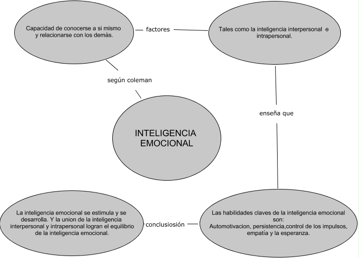 Inteligencia emocional mapa conceptual. Automotivacion persistenciacontrol de los impulsos empatía y la esperanza Capacidad de conocerse a si mismo y relacionarse con los demás. Enseña que Las habilidades claves de la inteligencia emocional son. Factores Tales como la inteligencia.