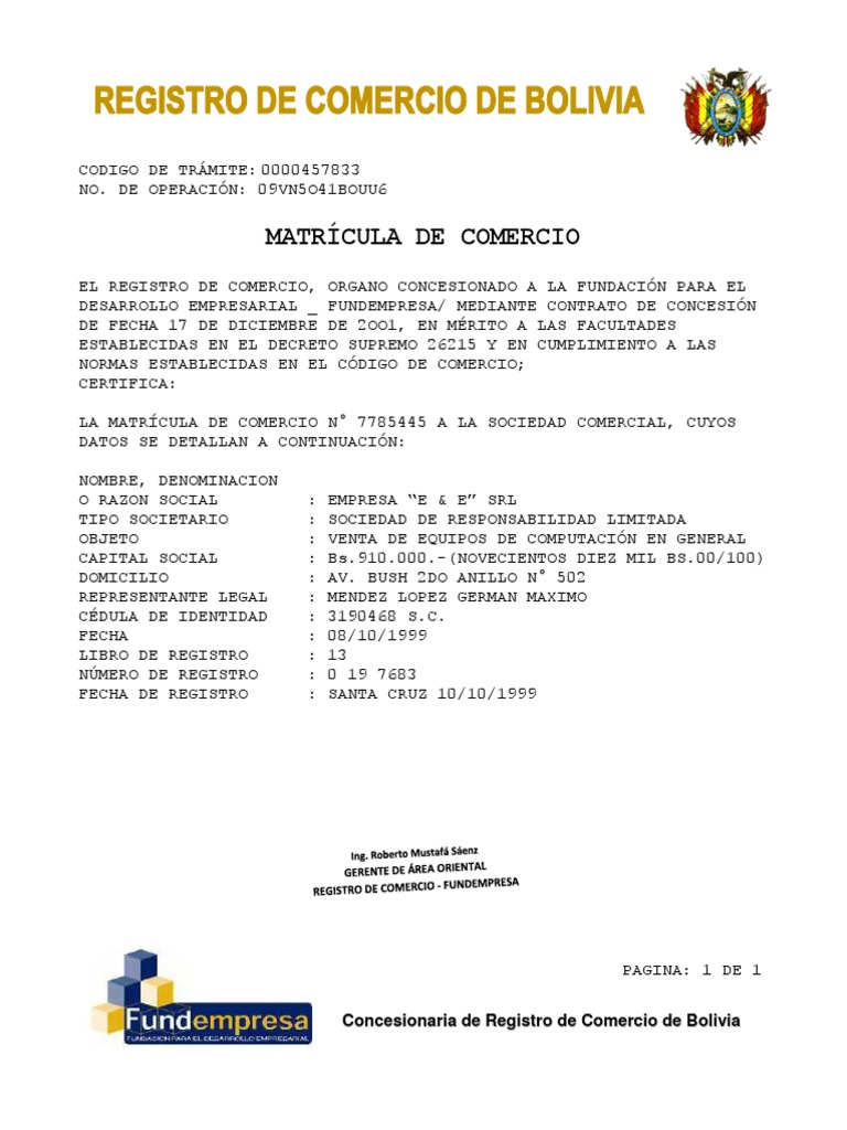 N 907 Fecha de gaceta. Código de Comercio Boliviano. El Código de Comercio por Resolución Suprema Nº 167823 de 7 de.