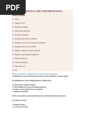 Algoritmo Para Ir Al Cine A Ver Una Pelicula Pdf Algoritmos Ocio