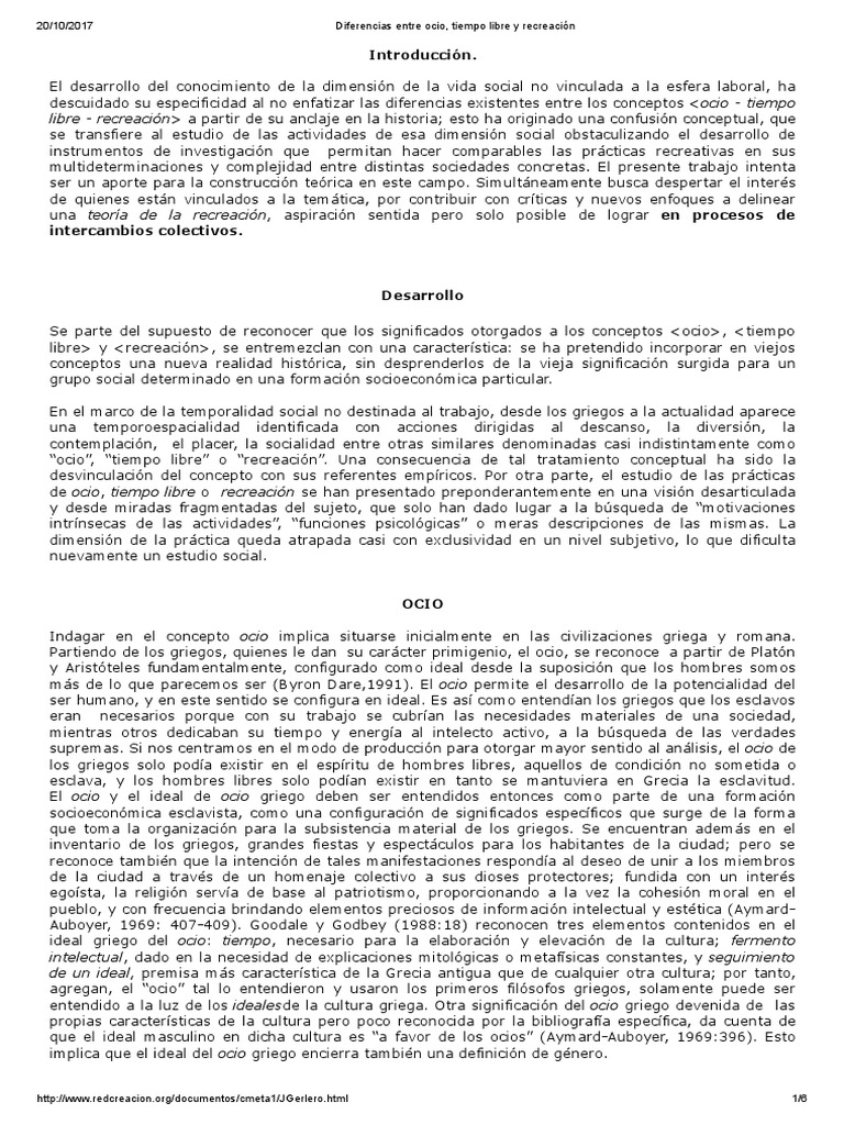 Diferencias Entre Ocio Tiempo Libre Y Recreacion Pdf Ocio Sociedad