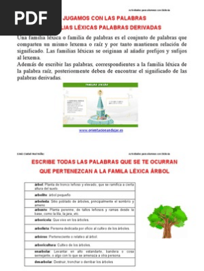 Palabras lexicas de arbol. Despojado o libre de árboles. Familia Léxica de Árbol. Familia de Palabras de Árbol.